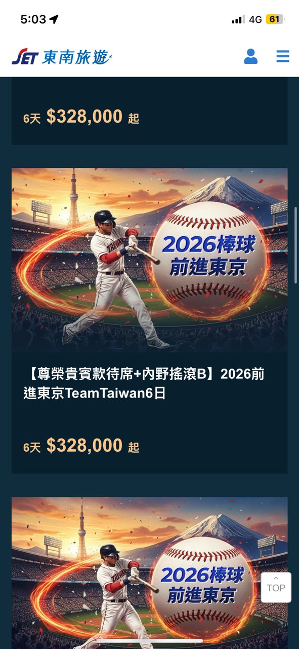 → ZHKWB: 很單純 這個行程費用可以保證看到台日戰,覺得太貴不要參加 12/22 17:31