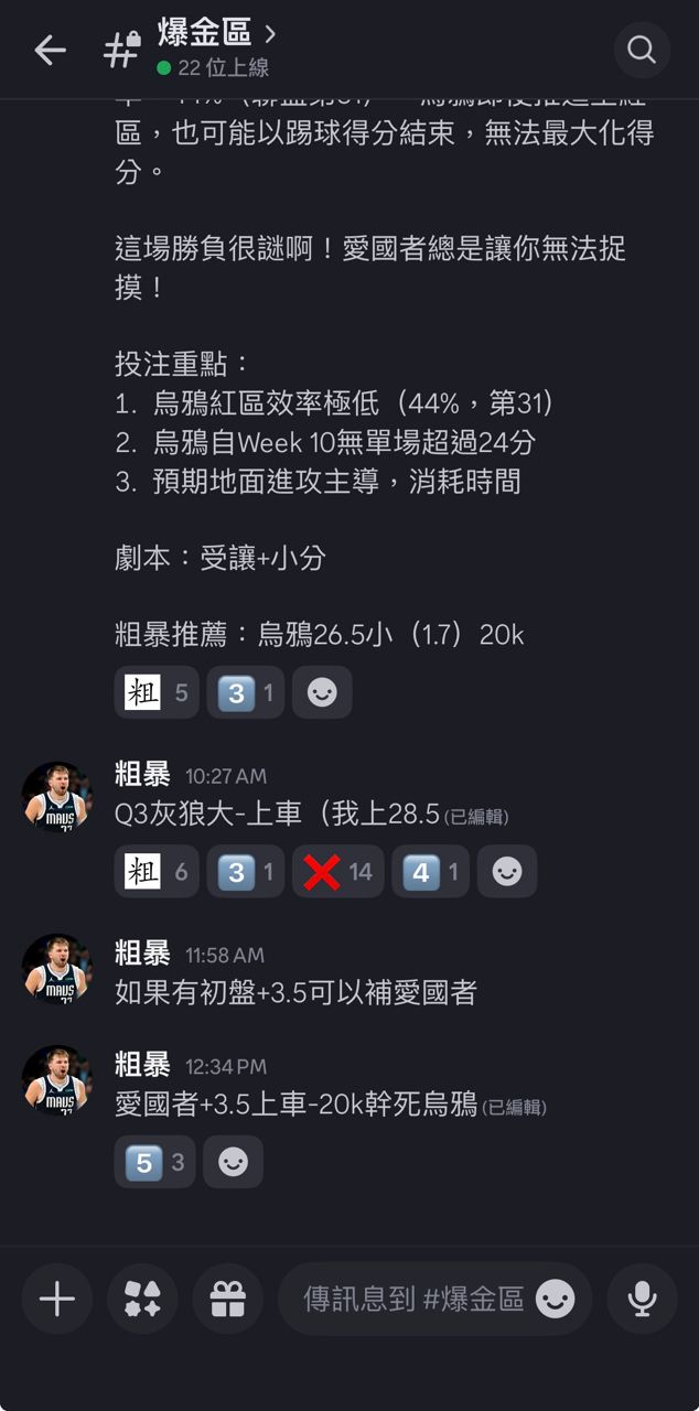 推 shunhahahaha: 愛國者pk2.05 +3.5 7.5 烏鴉26.5小 39.14.8.105 12/22 12:27