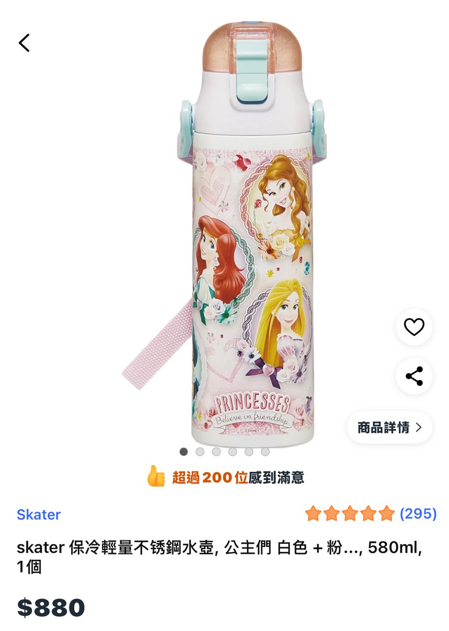 1.商品名稱:skater 保冷輕量不锈鋼水壺 580ml