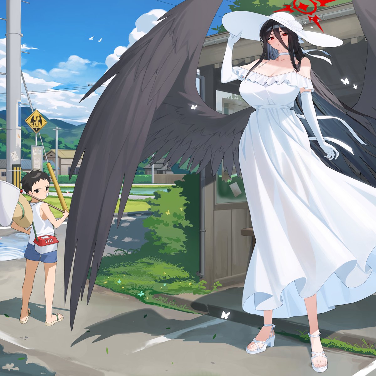 標題[蔚藍] 很大的白帽白洋裝羽川蓮實與小男孩
