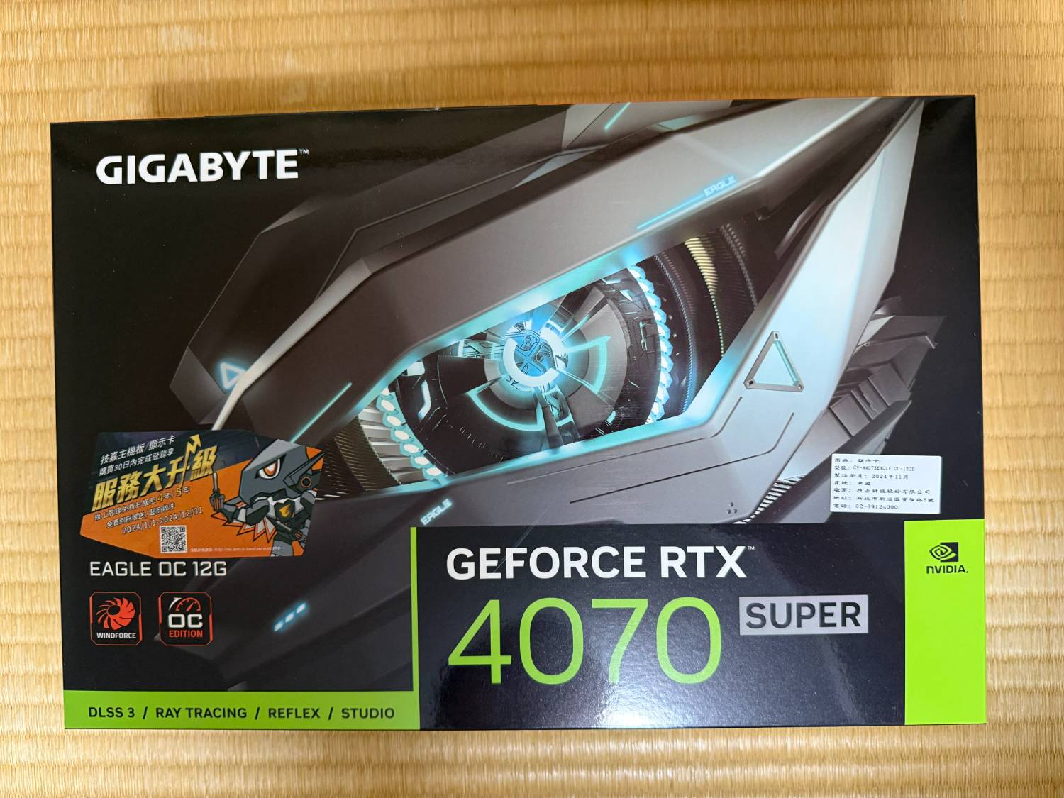◎硬體型號: 1.技嘉GeForce RTX 4070 SUPER EAGLE OC 12G 顯示卡