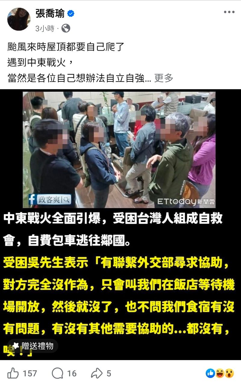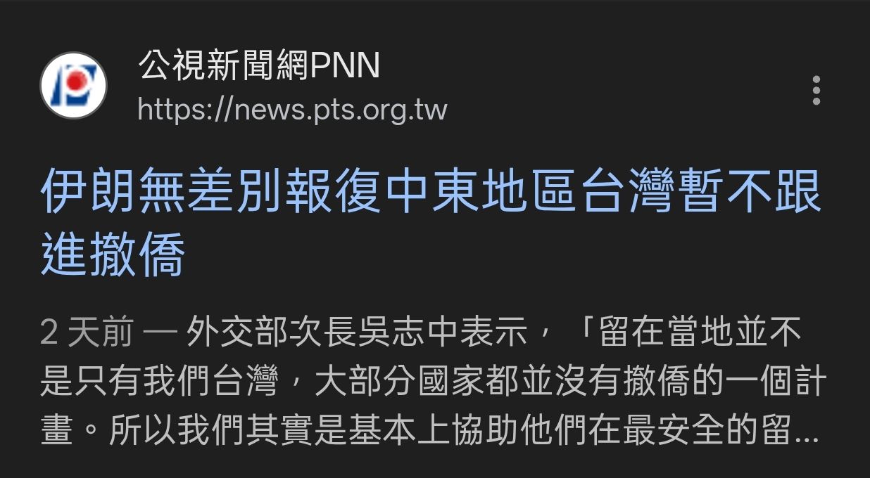空班機抵達。外交部持續提供最新資訊與協助服務,並設置「外交部因應中東情勢專區」,