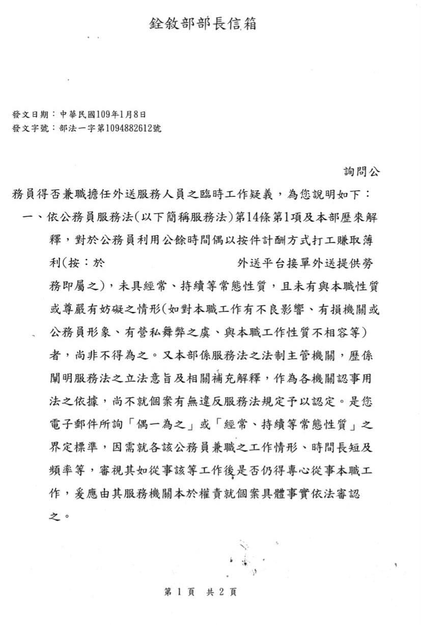 → analysis5566: 何況公務員兼職外送員也是准許的 02/12 16:49