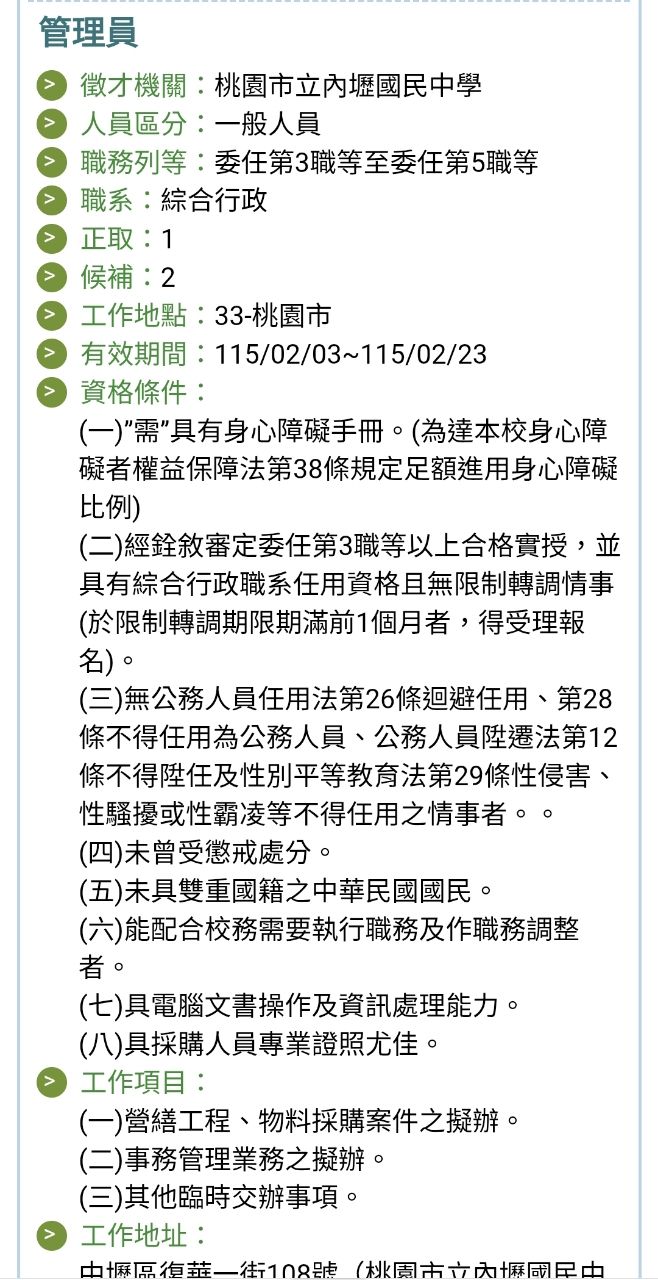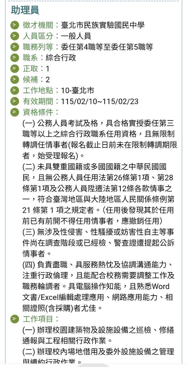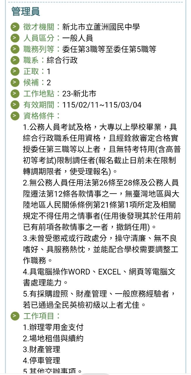 推 tomokazu : 大小營繕、總管、倉管、消防、房地、資產、資訊、 02/26 12:22