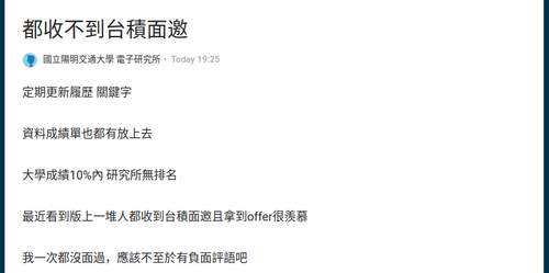 標題[討論] 交大電子男同學: 都收不到台積面邀 (設備)
