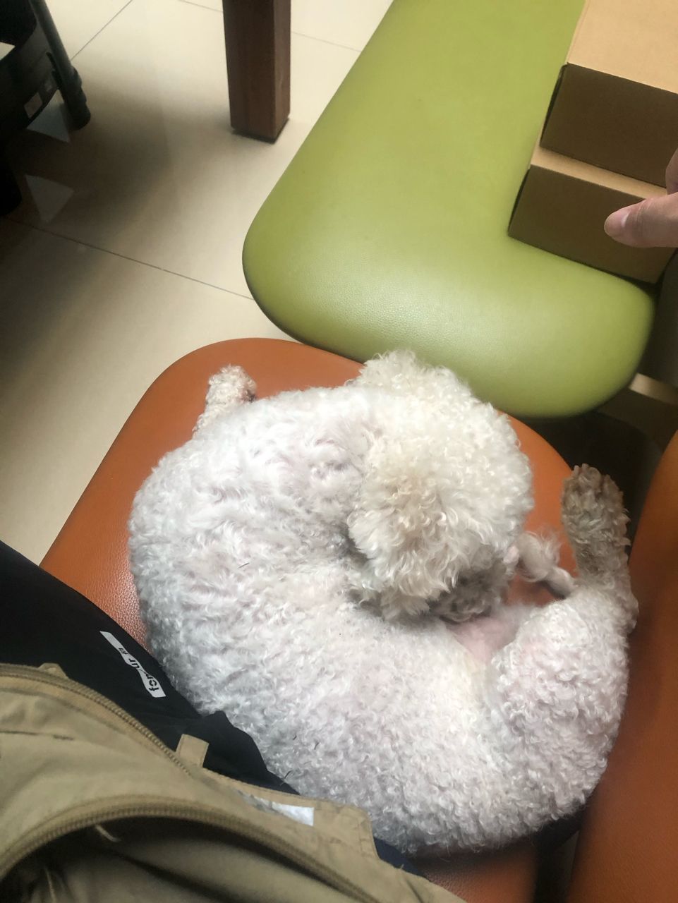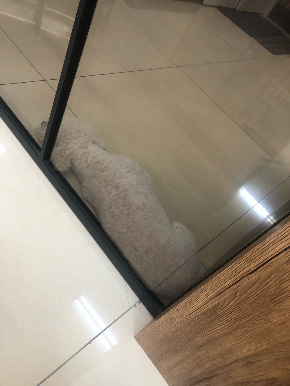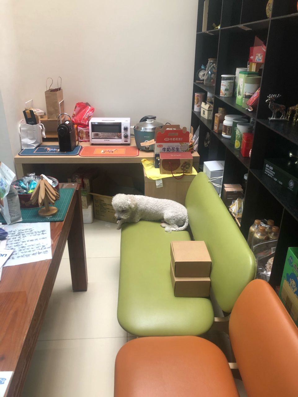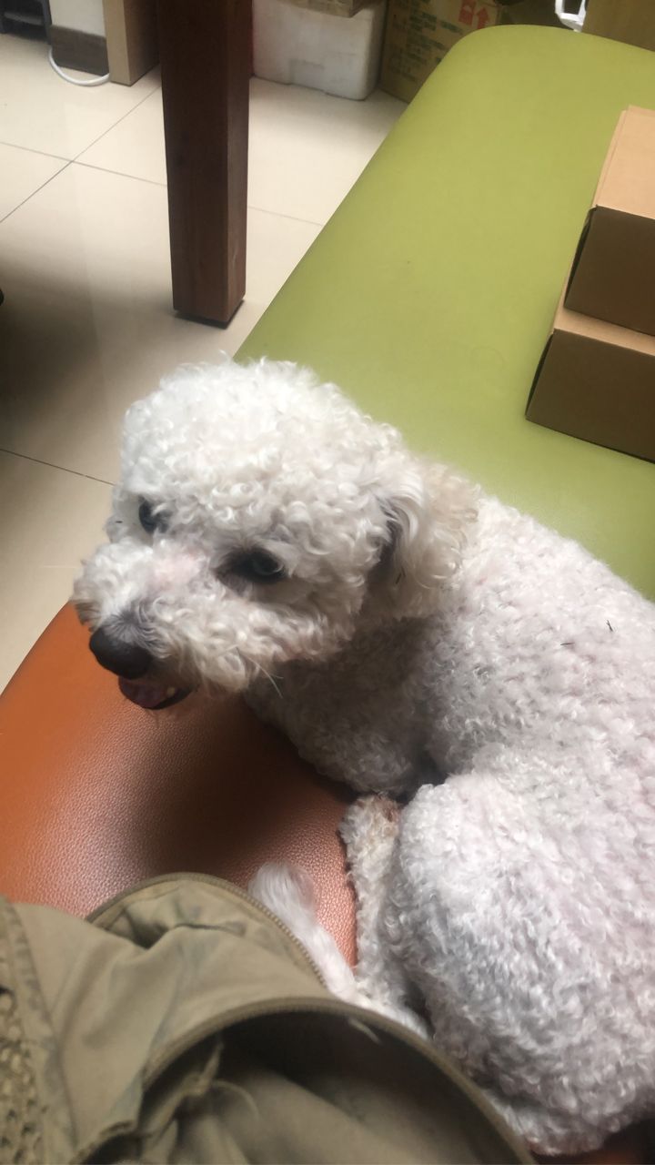 有隻陌生的白貴賓跑進來小弟辦公室