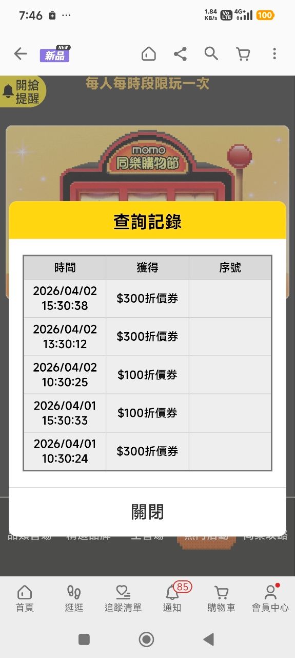 推 wuqq0920: 準時抽到也是100或300廢券 110.28.9.57 04/03 07:46