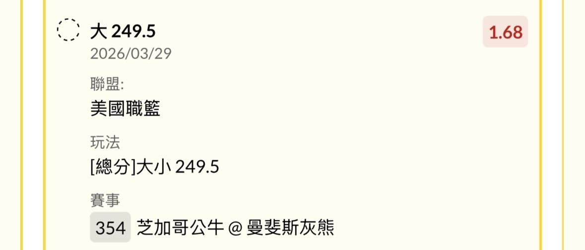 → luckywind: 公牛124.5 灰熊120.5上半公牛-1.5 1.66 125.230.0.43 03/29 07:52