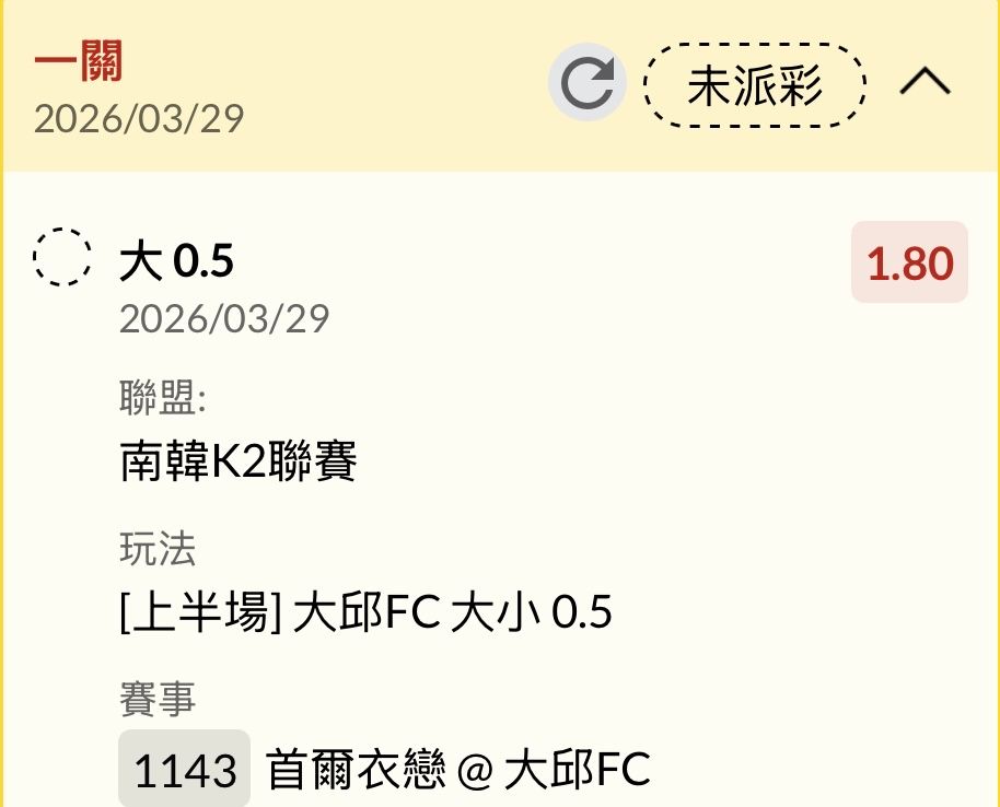 推 superbravers: 大邱FC1.5大聽牌 218.166.207.39 03/29 15:54