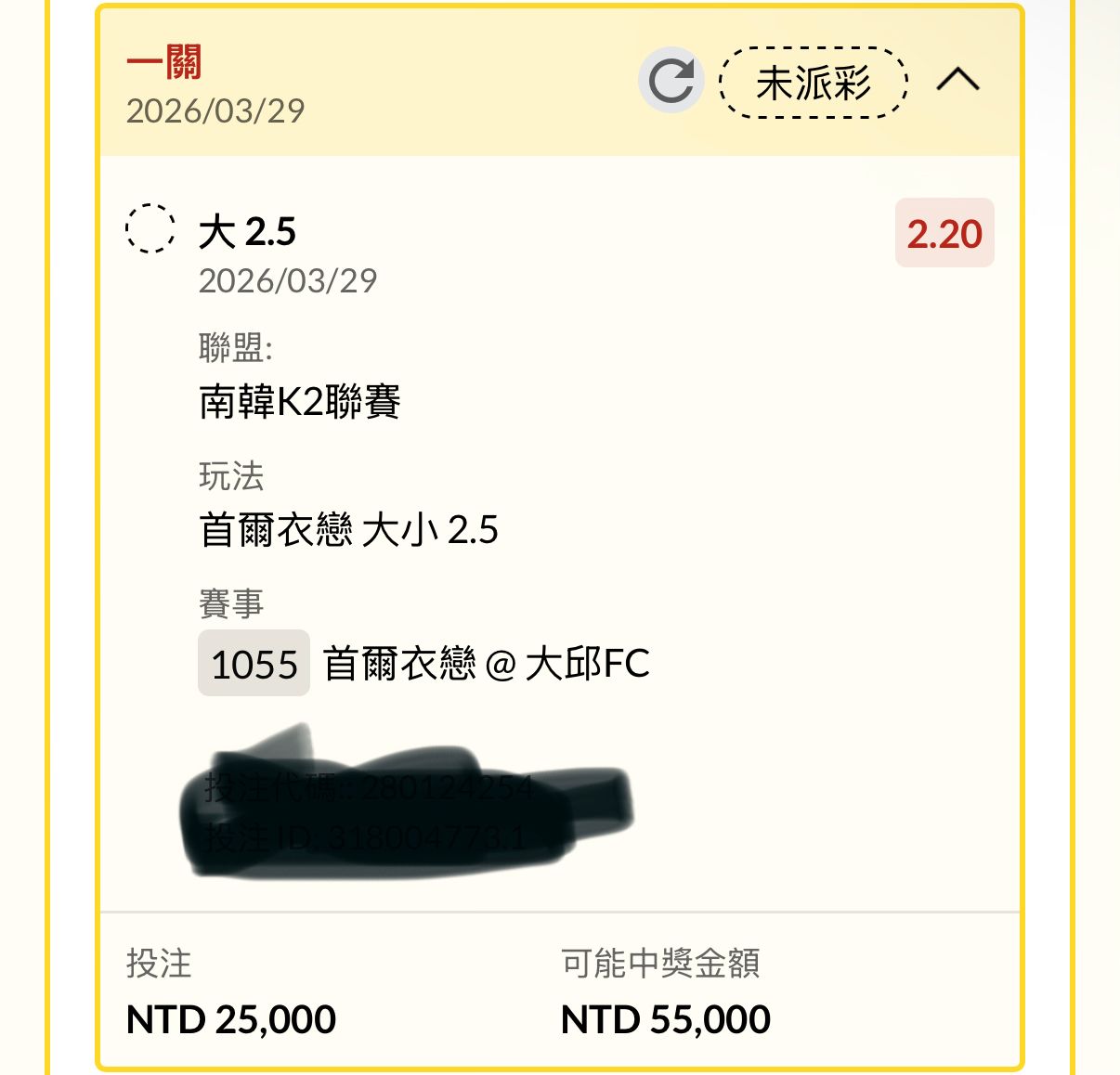 推 Alexchen0704: 2.5大 大邱1.5大 111.250.217.72 03/29 15:30