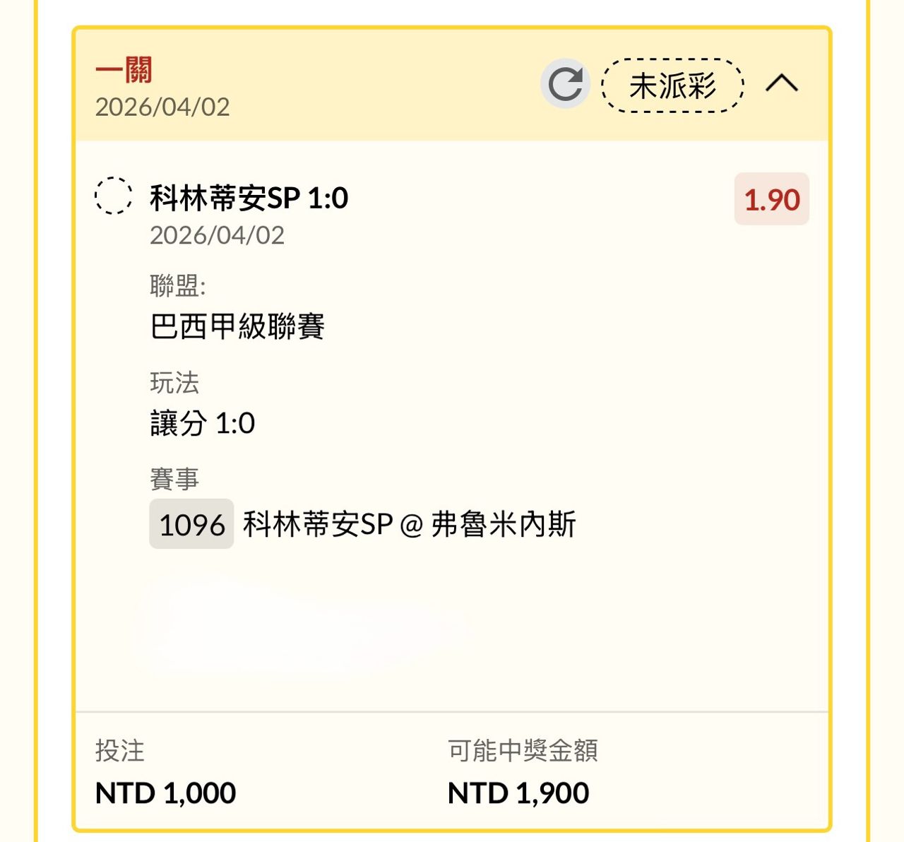 ※ 文章網址: https://www.ptt.cc/bbs/SportLottery/M.1775083944.A.4E3.html